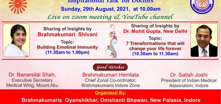 Medical Wing is organizing E Conference on Mind-Body-Medicine from 20th & 21st March, 2021 where senior medical professionals and Raja Yoga Practitioners will share simple but amazing spiritual tools which will shift us from busy to easy, anger to patience, irritation...
