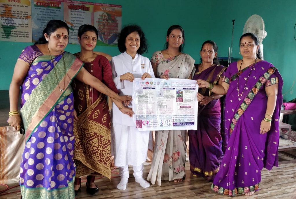 October Breast Cancer Awareness Month celebration with WOW Breast and Cervical Cancer Awareness & Free Hb and RBS check up camp by BK Dr Shubhada Neel at Chirner Uran on 6th Oct. Around 250 women participated in the program.
